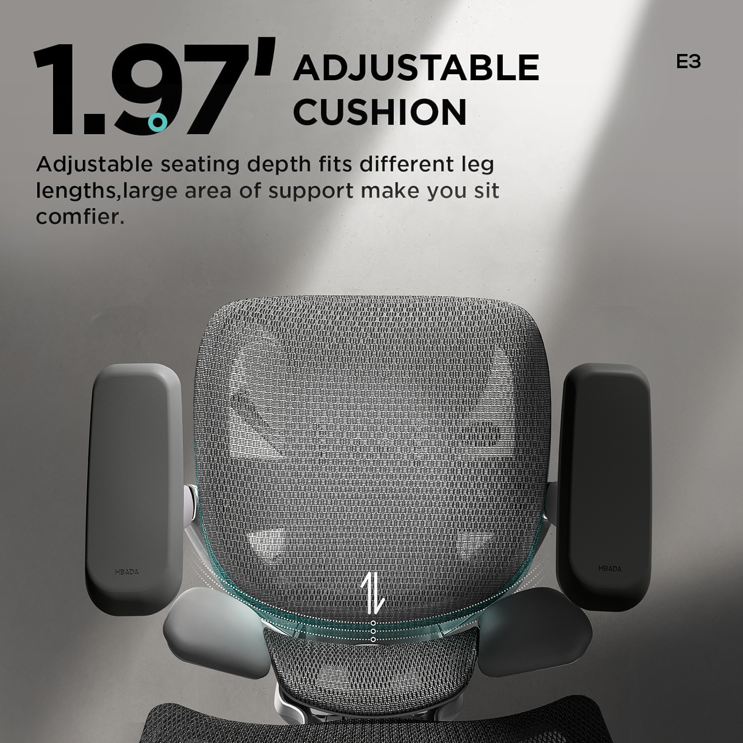 The Hbada E3 Chair features adjustable ergonomic components, including a 4D dual-axis adjustable headrest and 360° mechanical armrests.These adjustments allow users to customize the chair to their unique preferences and body dimensions, promoting proper posture and comfort throughout the day.