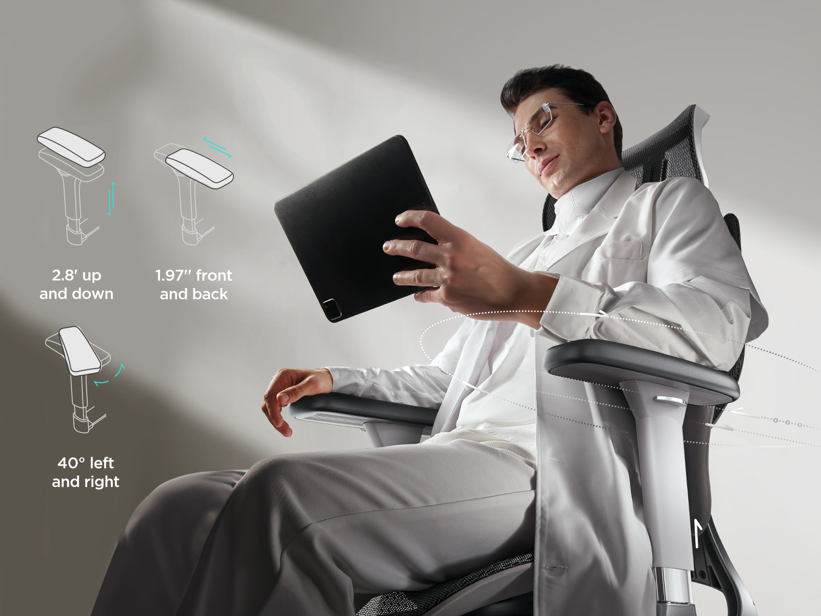 Freely adjust in 3 dimensions to support your arms and relax your shoulders