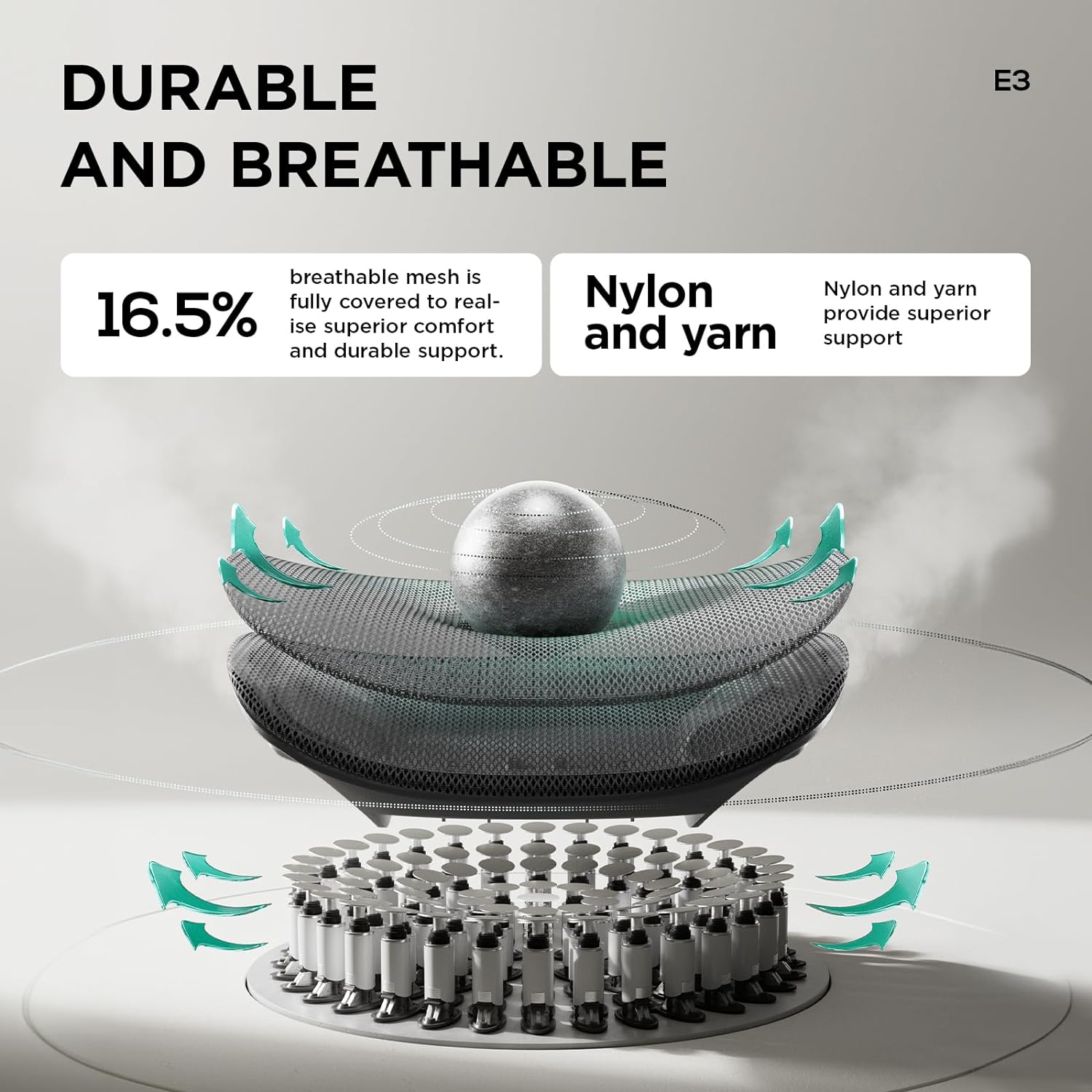 - 16.5% breathable mesh is fully covered to realise superior comfort and durable support.